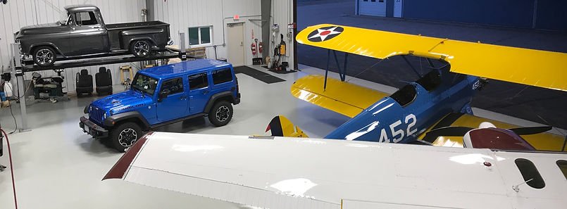 "Brad & Mike, I finally took a photo of my '56 GMC PU on the lift in my hangar. It has been a life-saver having the lift to check the truck over after putting the first 100 or so miles on it. The lift works great! Thanks"