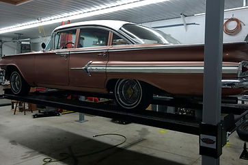 I wanted to let you know we are real pleased with the lift I bought so far. I appreciate you going over the install instructions. It took a friend and I about 4 hours start to finish. It rolls around my pole barn concrete easily so I can work wherever its convenient. I also wanted to thank you for tracking me down at back to the fifties to make sure I was satisfied and everything was working well. Keep up the good work and best of luck with your business.